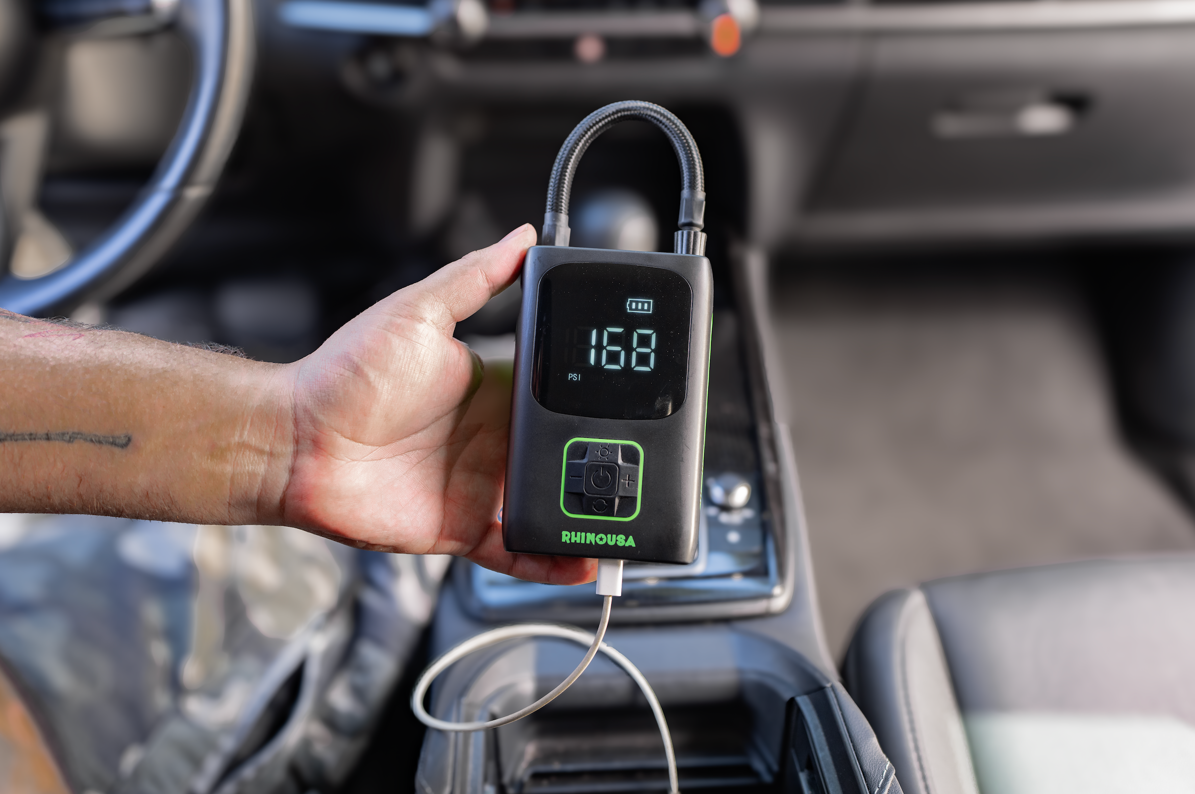 The automatic shutoff function stops inflation as soon as the desired PSI is reached, preventing overinflation and ensuring accurate results. Built with a reinforced high-pressure hose, durable casing, and long-lasting rechargeable battery, it’s tough enough for any adventure. Backed by Rhino USA’s real lifetime replacement guarantee, you can rely on it trip after trip.