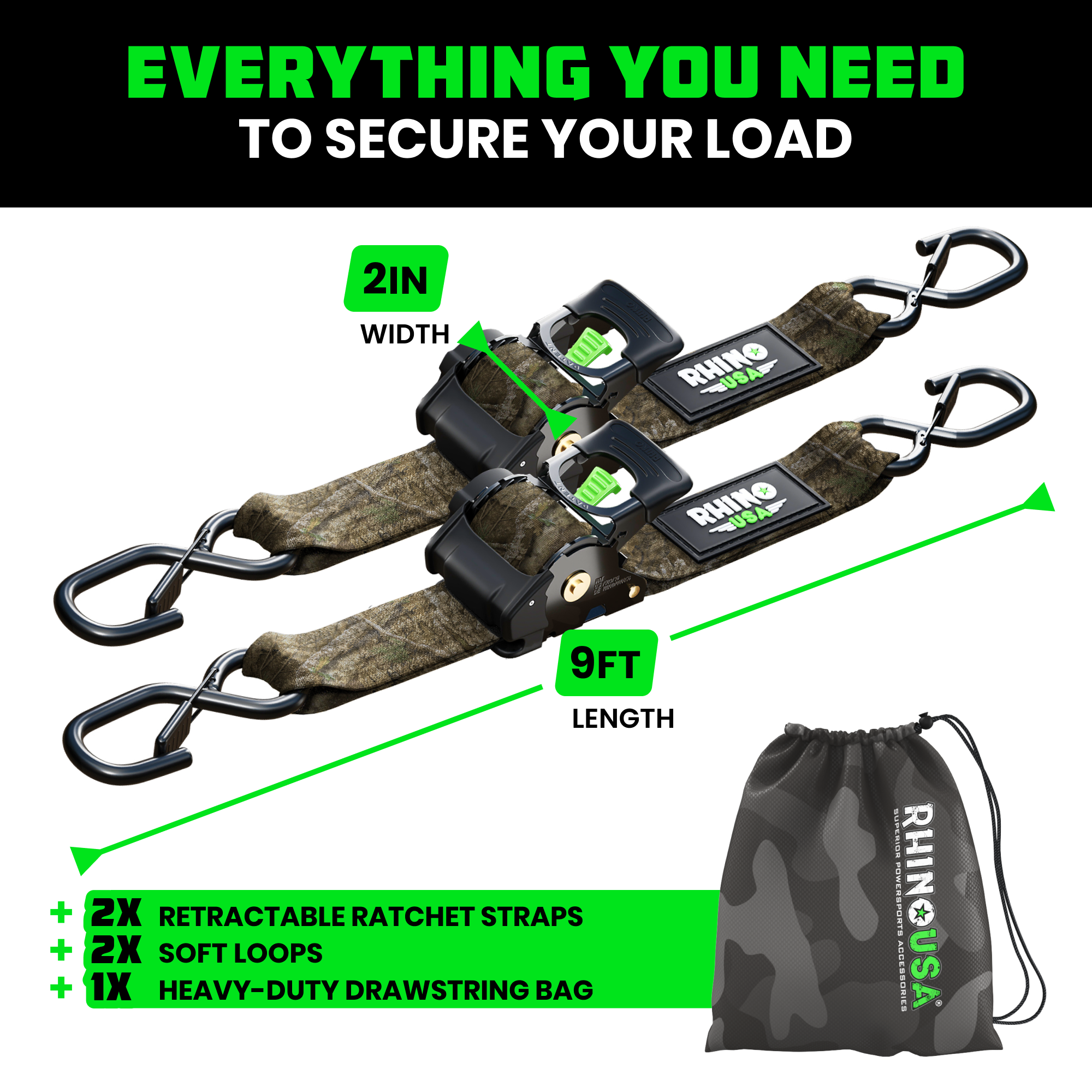 Introducing Rhino USA Retractable Ratchet Straps: the ultimate solution for securing your cargo with ease and confidence. Our innovative straps are designed to make your life easier, instantly retracting excess strap length with the click of a button. Whether you're a professional truck driver, an outdoor enthusiast, or simply someone who wants to ensure their belongings stay safe during transportation, these straps are for you.