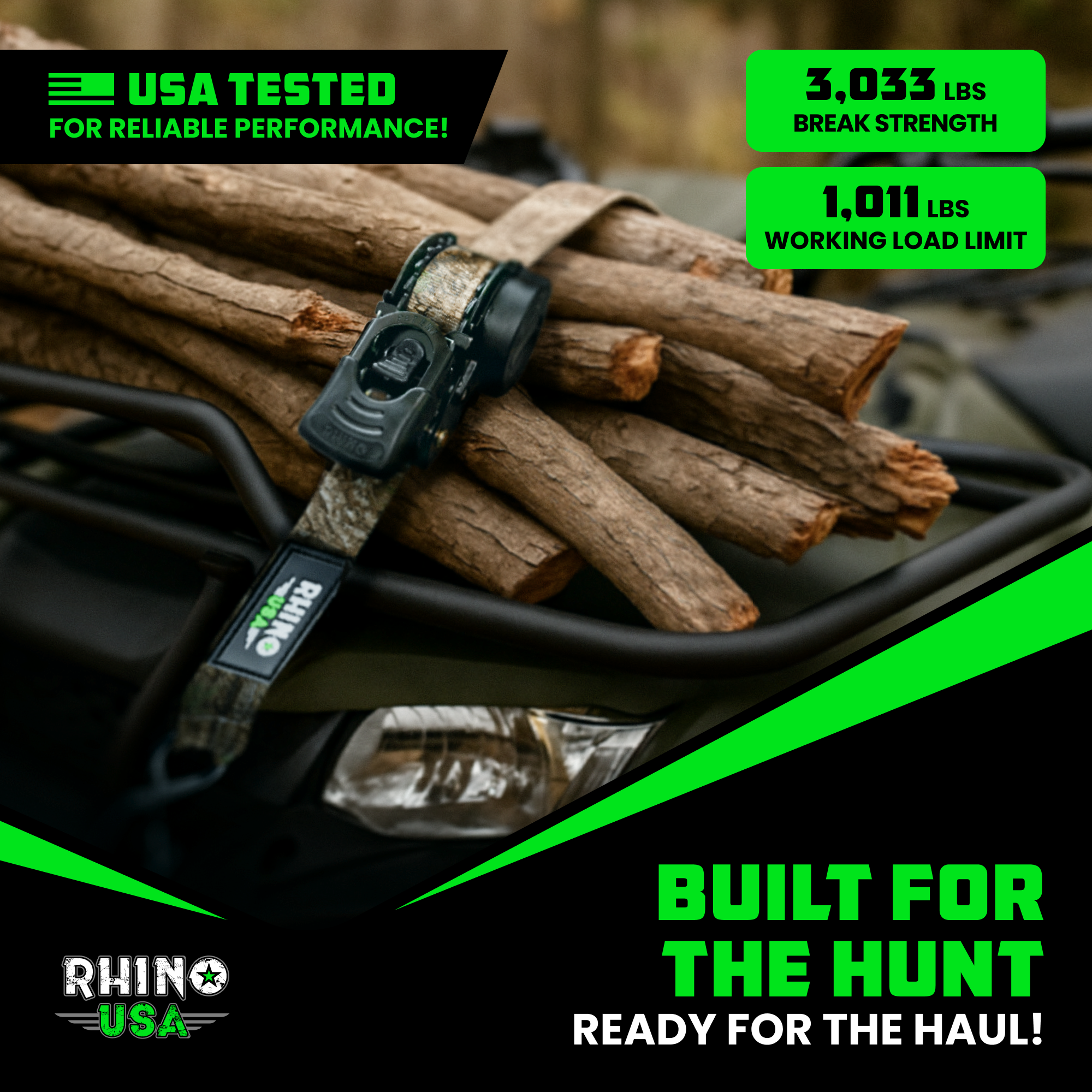 The maximum break strength of Rhino USA retractable ratchet straps varies by model, but they typically range from 1,200 lbs to over 3,000 lbs of max break strength and 1,000 working load limit.