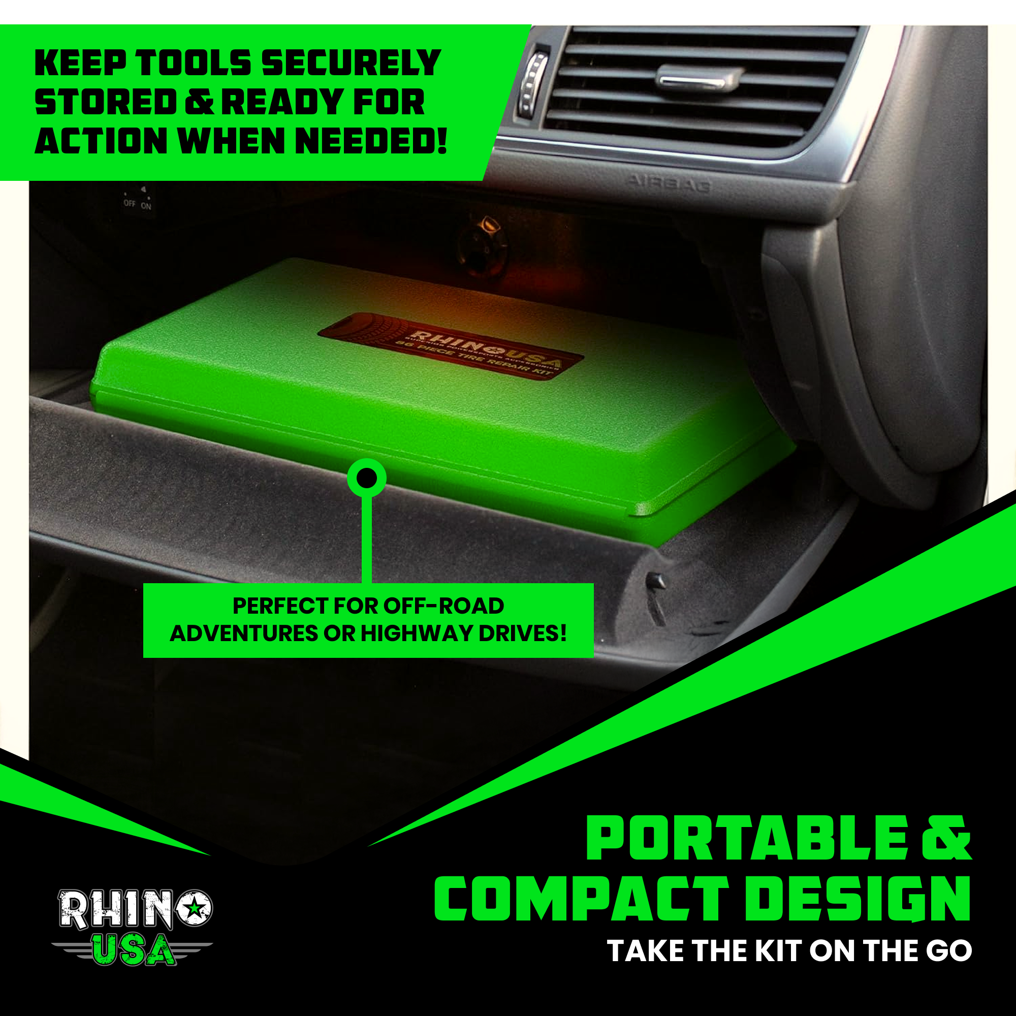 Introducing the Rhino USA 86 Piece Tire Repair Kit – the ultimate solution for tackling unexpected tire emergencies with ease. This comprehensive kit is designed to empower you with the tools you need to repair punctures and get back on the road quickly and safely. With a range of high-quality components, including plugs, patches, a sturdy T-handle insert tool, and a portable carrying case, this kit provides everything you need for efficient and reliable tire repairs.