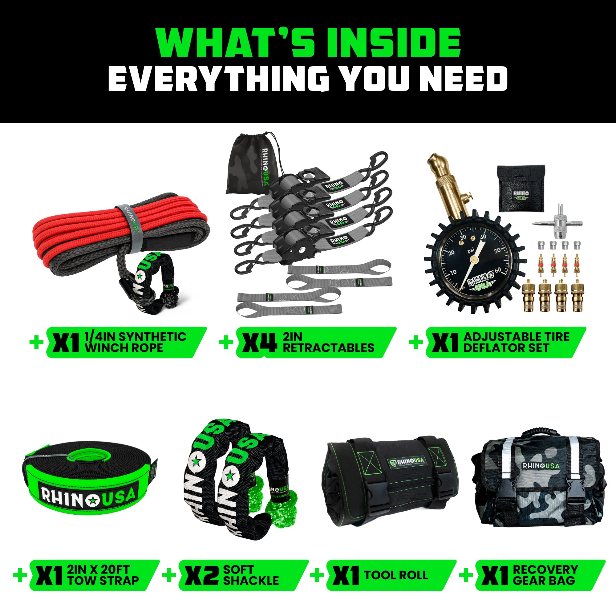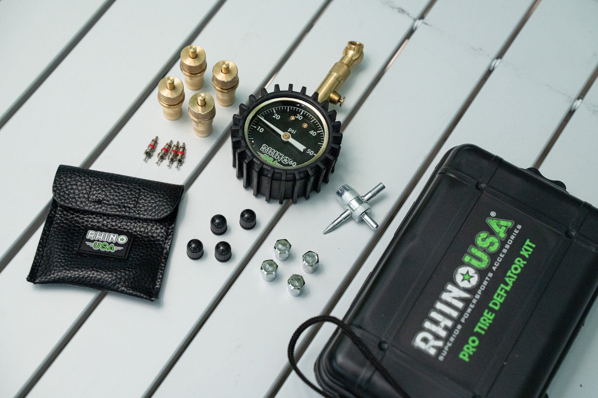 The Rhino USA Pro Tire Deflator Kit is the ultimate solution for precise and efficient tire deflation. Designed with off-road enthusiasts in mind, this kit is built to withstand rugged conditions and deliver reliable performance. With its quick and easy-to-use design, you can deflate your tires to the perfect pressure in no time. The versatility and portability of the kit make it ideal for all types of vehicles, and the bonus accessories and storage case add even more value.