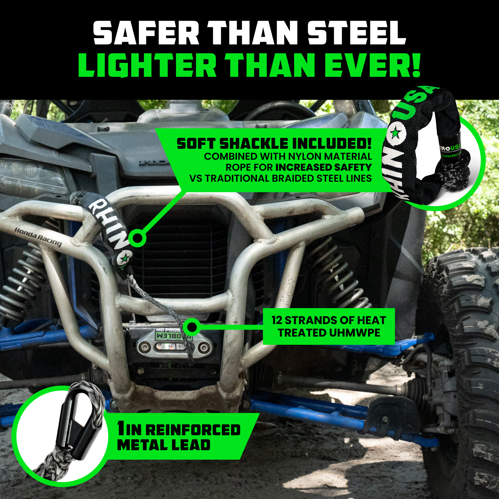 Say goodbye to steel D-rings — these Rhino USA Soft Shackles are lighter, safer, and easier on your gear. Perfect for connecting your Tow Strap or Kinetic Rope, they give you the flexibility to anchor from nearly any point on your UTV or a buddy’s rig. With these in your kit, you’re ready for any recovery scenario the trail throws at you.