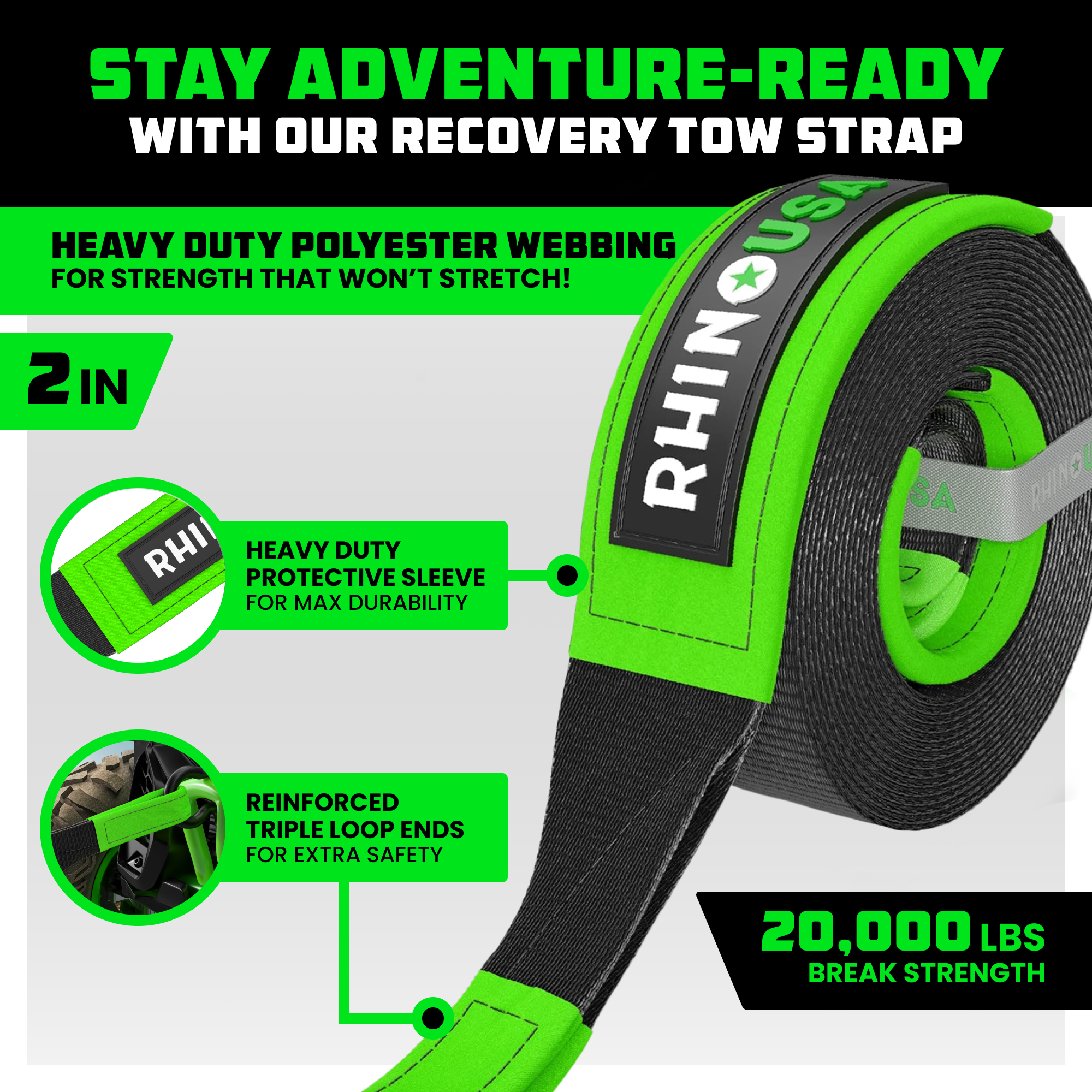 2" X 20' RECOVERY TOW STRAP