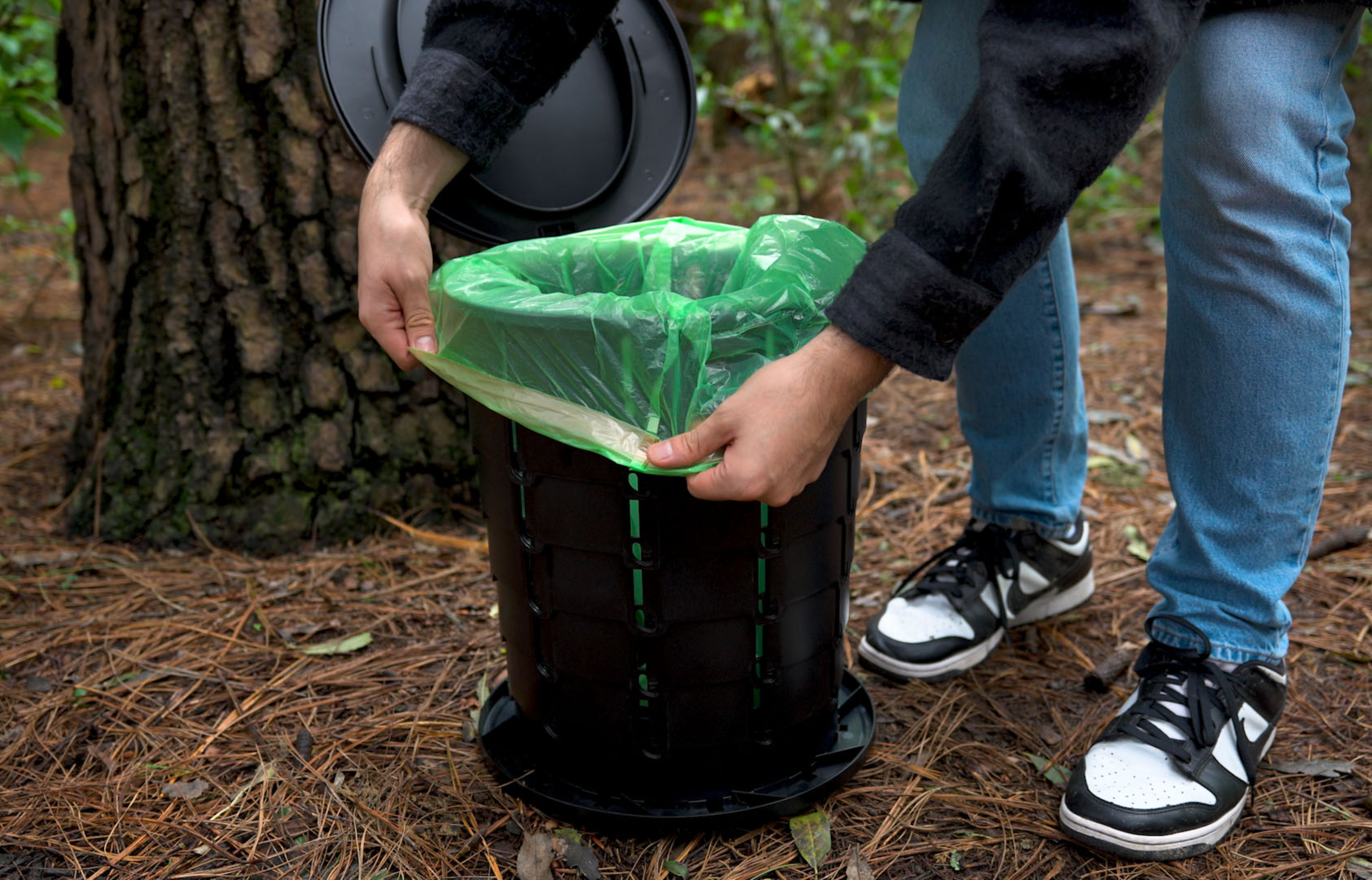 Weighing only 4 lbs, this lightweight design collapses flat for effortless transport and storage in a compact camo bag. Included mint-scented, biodegradable bags make waste disposal simple, odor-free, and eco-friendly. Whether camping, hiking, fishing, or road-tripping, this portable solution keeps your adventures fresh and stress-free.