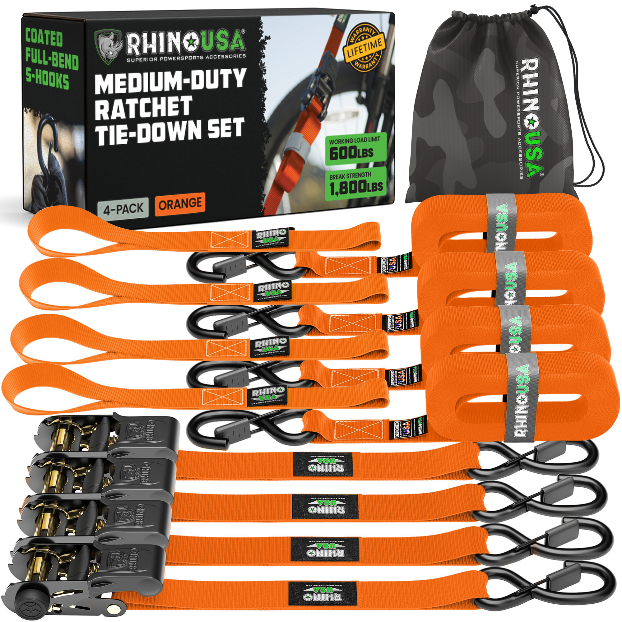 Perfect for a wide range of uses, from securing kayaks and canoes to tying down mountain and e-bikes, these straps are as versatile as they are durable. The Rhino USA Ratchet Tie Down Straps are designed to handle various types of cargo with ease, making them an essential tool for outdoor enthusiasts, movers, and anyone needing reliable tie-down solutions.