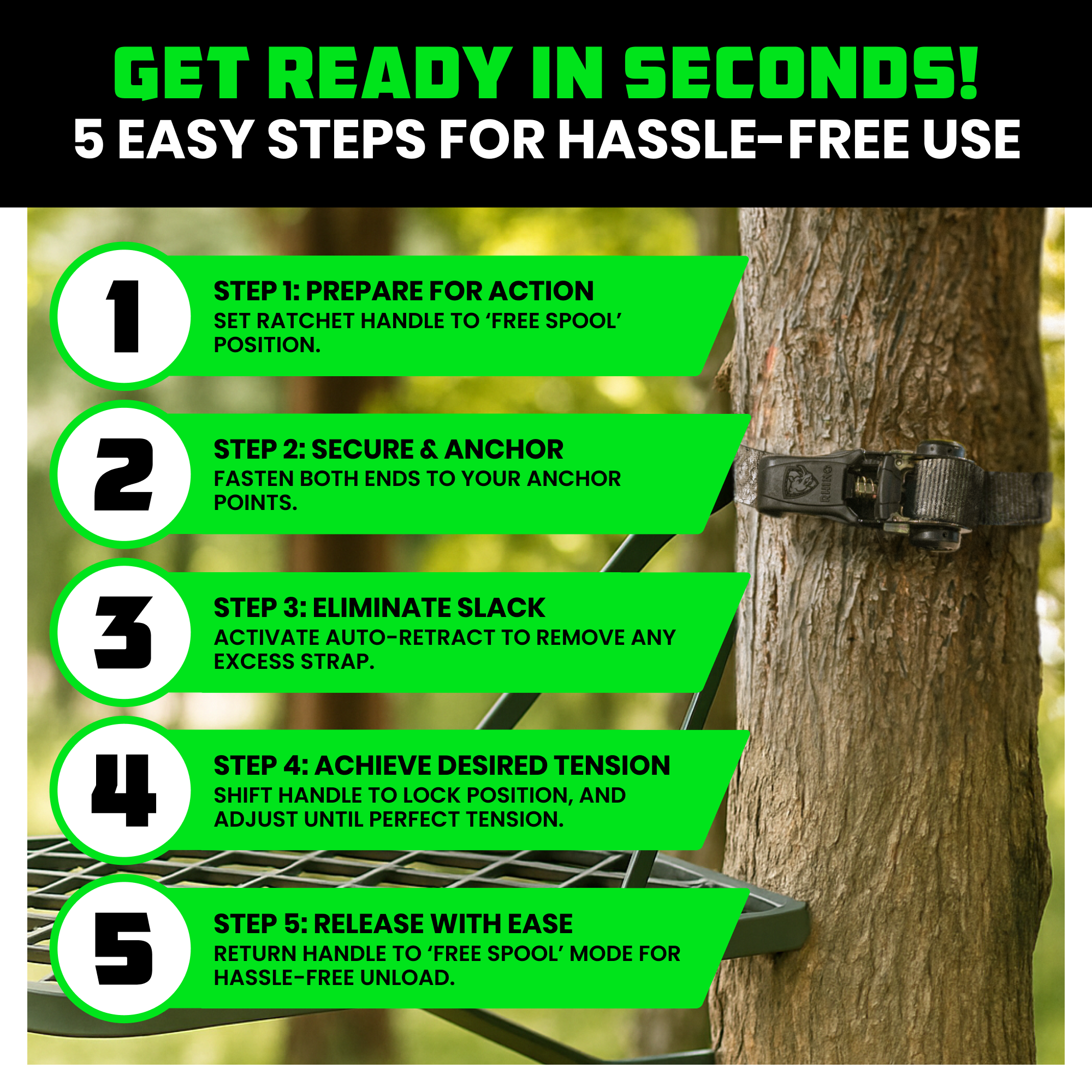 All medium-duty ratchet straps come with a heavy-duty draw-string storage bag. Perfect for organizing all your off-roading and tie-down accessories so they’re at the ready when you need them most. Holds up to 10 lbs!