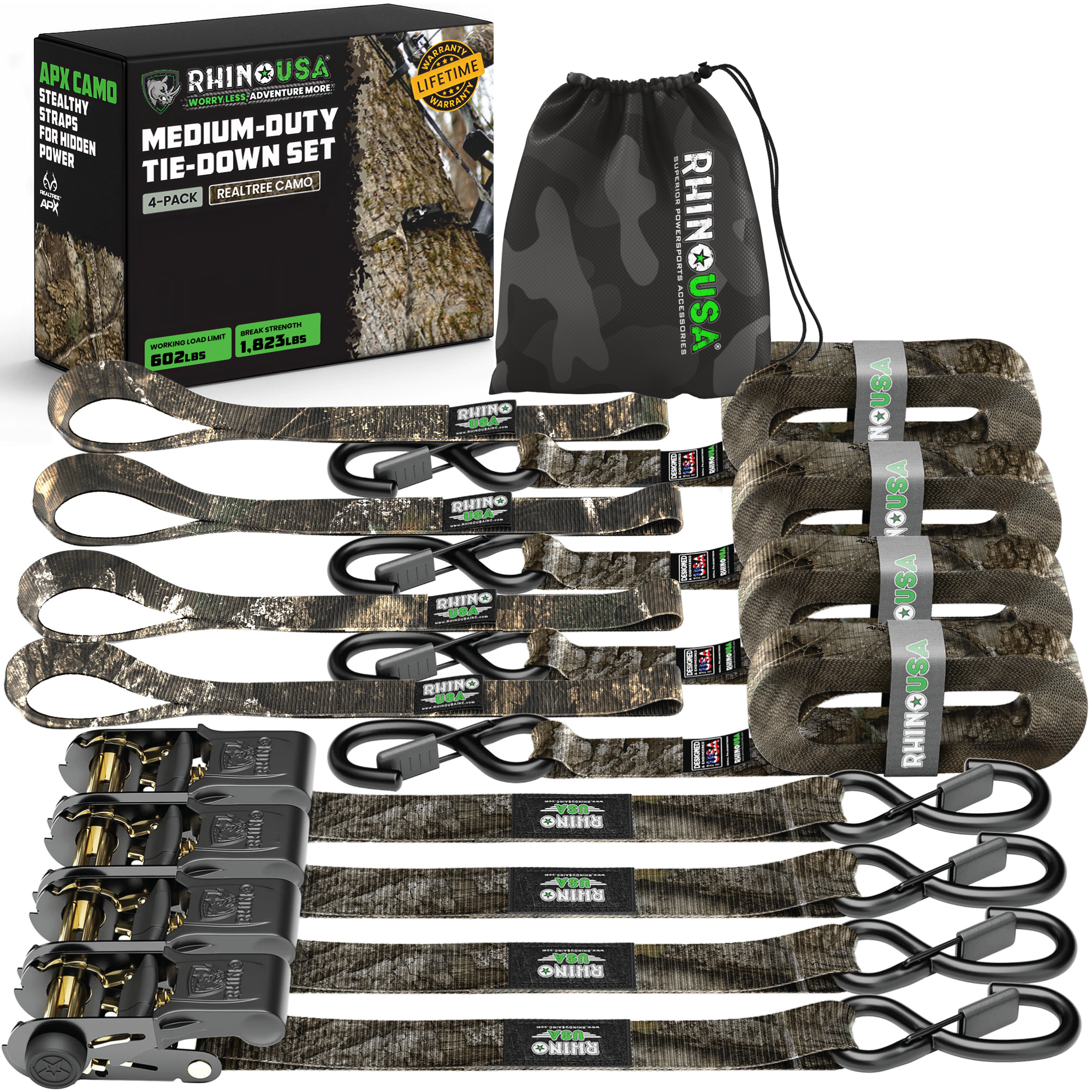 Perfect for a wide range of uses, from securing kayaks and canoes to tying down mountain and e-bikes, these straps are as versatile as they are durable. The Rhino USA Ratchet Tie Down Straps are designed to handle various types of cargo with ease, making them an essential tool for outdoor enthusiasts, movers, and anyone needing reliable tie-down solutions.