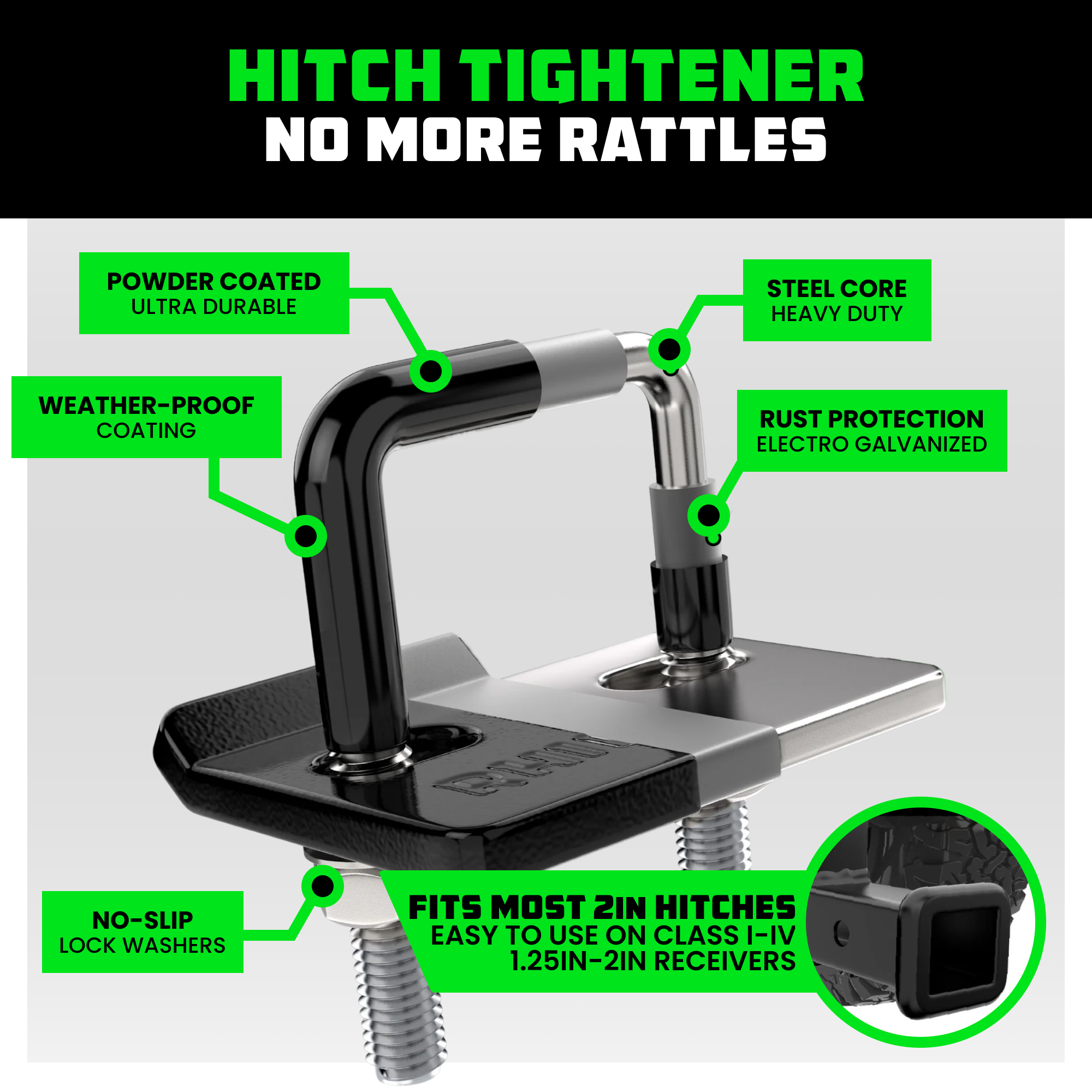 Eliminate the clank, rattle, and play in your towing setup with the Rhino USA 2" Hitch Tightener. This simple yet powerful upgrade locks your hitch connection solid, reducing noise, vibration, and sway for a smoother, more comfortable ride. Whether you’re towing a camper, boat, or utility trailer, this anti-rattle essential is a must-have for anyone who wants a quieter, more stable haul every time they hit the road.