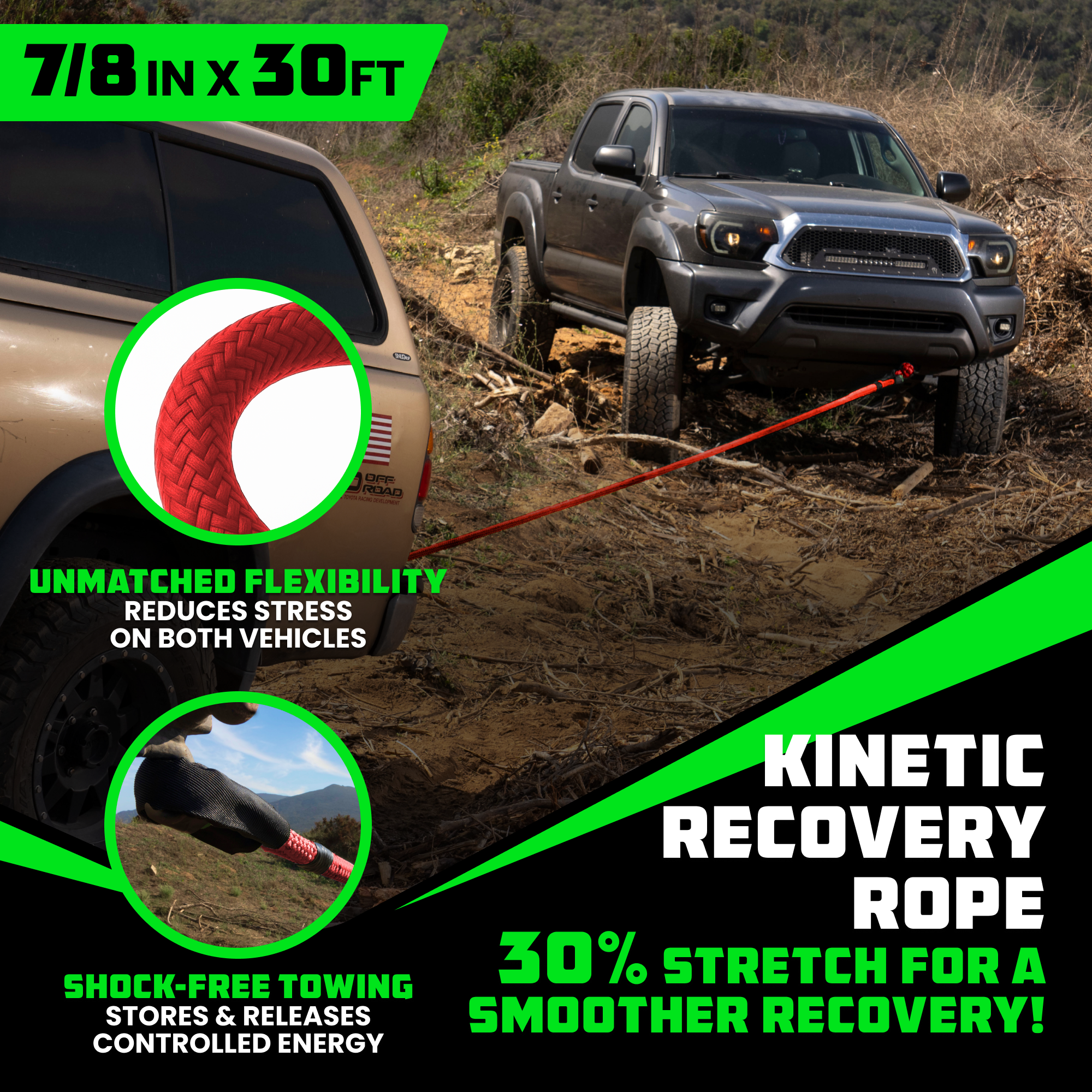 When traction disappears, this rope brings you back. The Rhino USA 7/8" Kinetic Rope uses controlled stretch to build momentum and deliver smooth, powerful recoveries in sand, snow, or mud. Strong, safe, and easy to handle, it’s the go-to solution for pulling your Jeep or SUV free without the jolt of a traditional tow strap. 1/2" Soft Shackles included – connect effortlessly to your Kinetic Rope or Tow Points for a quick, secure recovery every time.