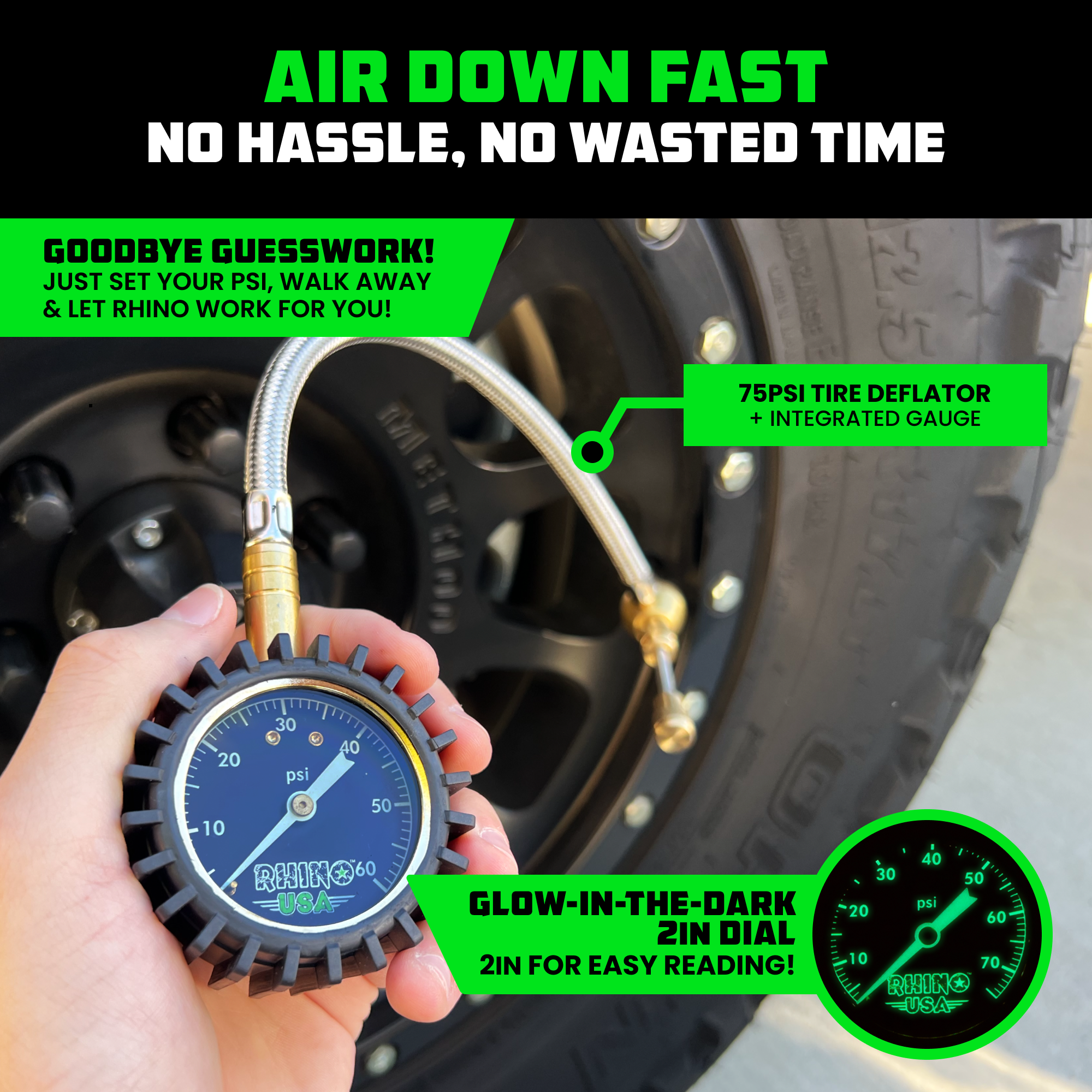 The Rhino USA 60PSI Tire Deflator Gauge is the ultimate solution for precise and efficient tire deflation. This innovative tool combines the convenience of a tire deflator with the precision of a pressure gauge, making it a must-have for every adventure seeker and off-road enthusiast. With its durable construction and easy-to-use design, you can now deflate your tires quickly and accurately to the perfect pressure for any terrain.